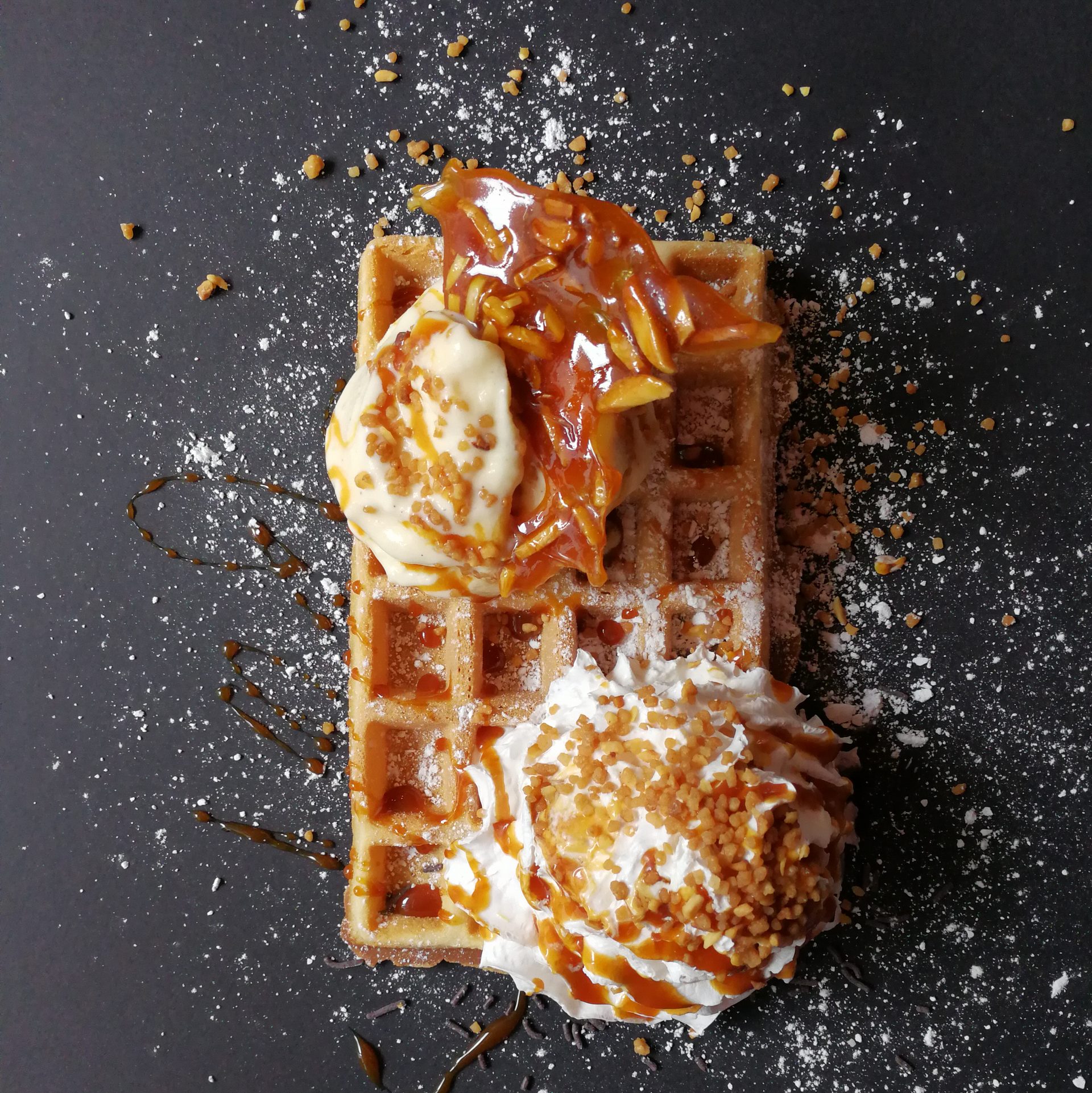 Eis, Eisbecher, vegane Waffeln, kleine Snacks, bio Caffè und viel viel leckeren Kuchen!